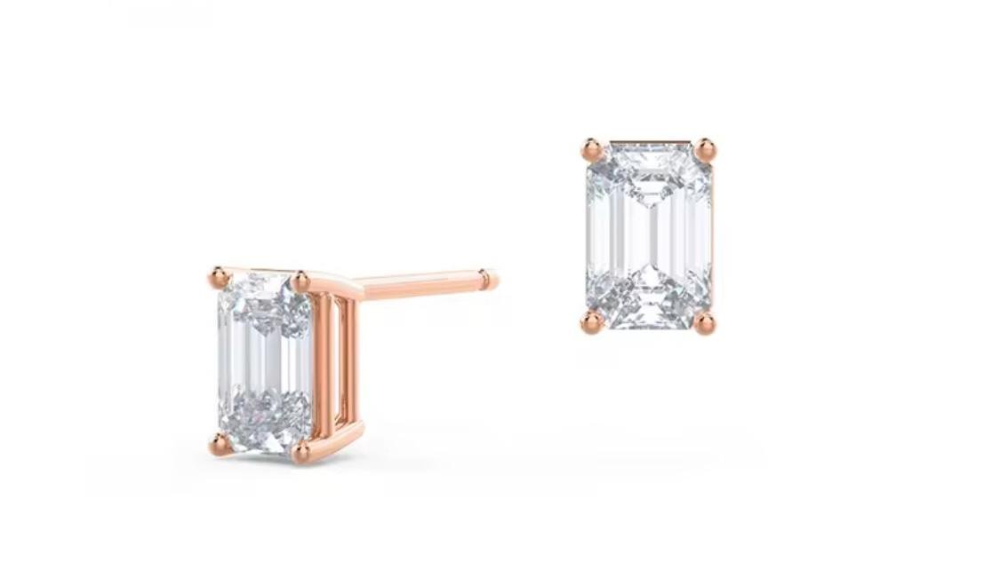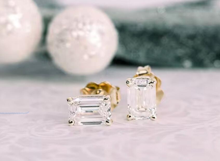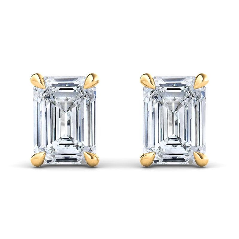 14 Carat Yellow Gold Emerald Cut Lab-Grown Diamond Stud Earrings!