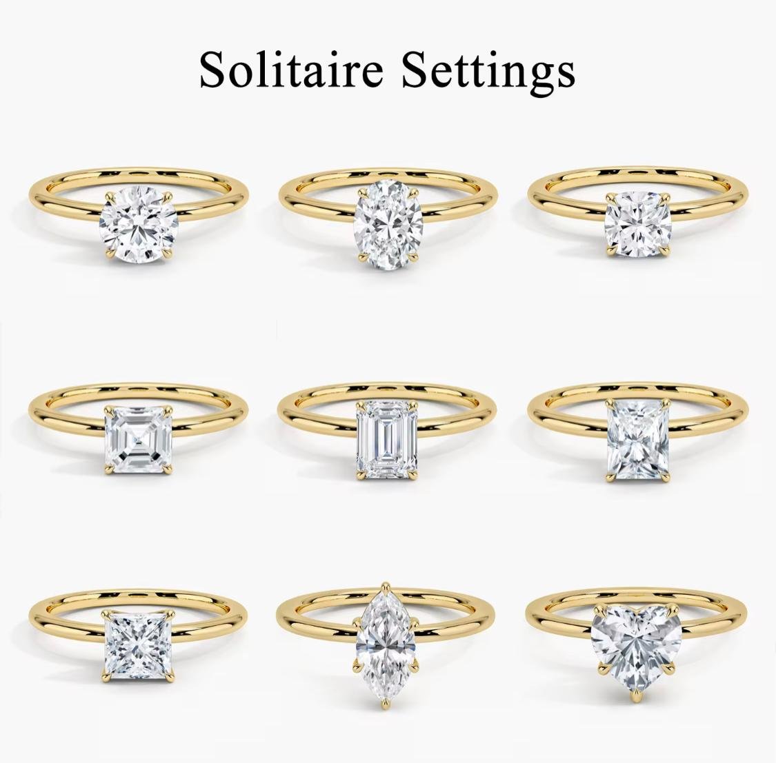 The band is crafted from gleaming yellow gold, reflecting warm and radiant light, while the centerpiece glimmers with a dazzling diamond available in multiple captivating shapes: oval, emerald, princess cut, heart, or other exquisite forms. Each diamond sparkles with remarkable brilliance. The simply but show stopping ring of shapes and sizes